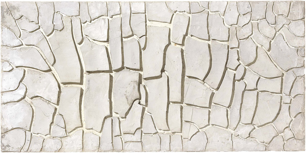Alberto Burri, Città di Castello (Pg) 1915 - Nizza 1995, Cretto bianco, (1974), Caolino e vinavil su tavola, cm. 42x85 (Bozzetto preparatorio di Alberto Burri) Storia, Collezione Massimo Baldelli, Citerna;, Collezione privata Opera inventariata presso la Fondazione Palazzo Albizzini - Collezione Burri, Città di Castello, prot. n. 452-96. Esposizioni, I protagonisti, arte italiana nei secoli, Farsettiarte, Cortina d'Ampezzo, 26 dicembre 1996 - 7 gennaio 1997, cat. n. 10, illustrato a colori.