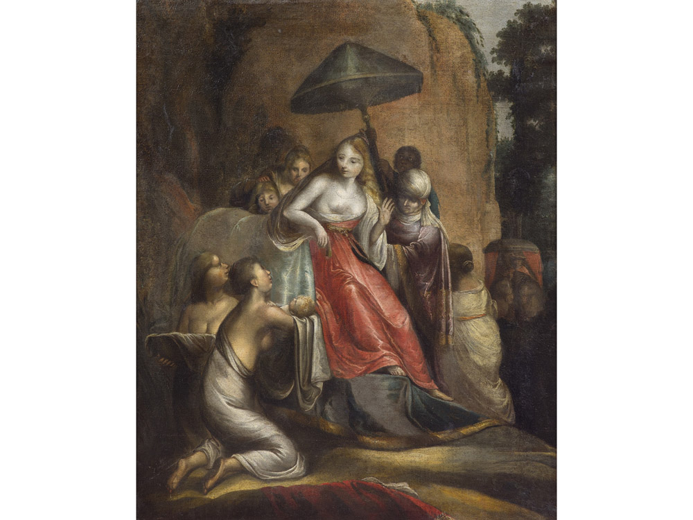 Scuola italiana (XVIII secolo) Il ritrovamento di Mosè Olio su tela 103x83 cm