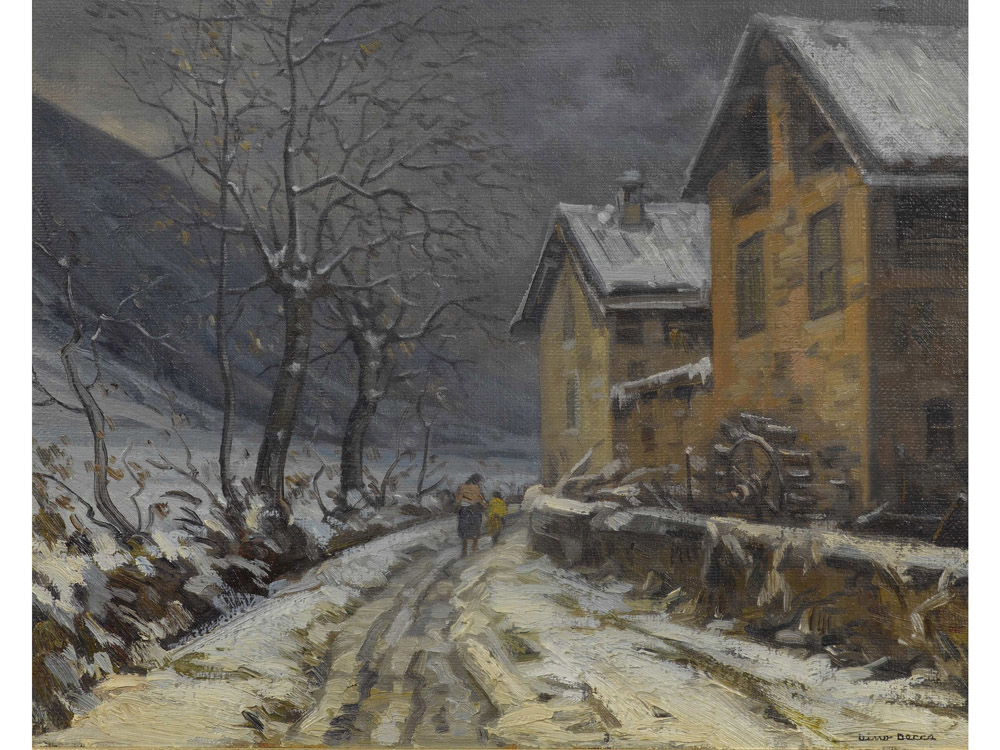 Dino Decca (Brescia 1935- 1999) Nevicata Olio su tela Firmato Misure 40x50 cm
