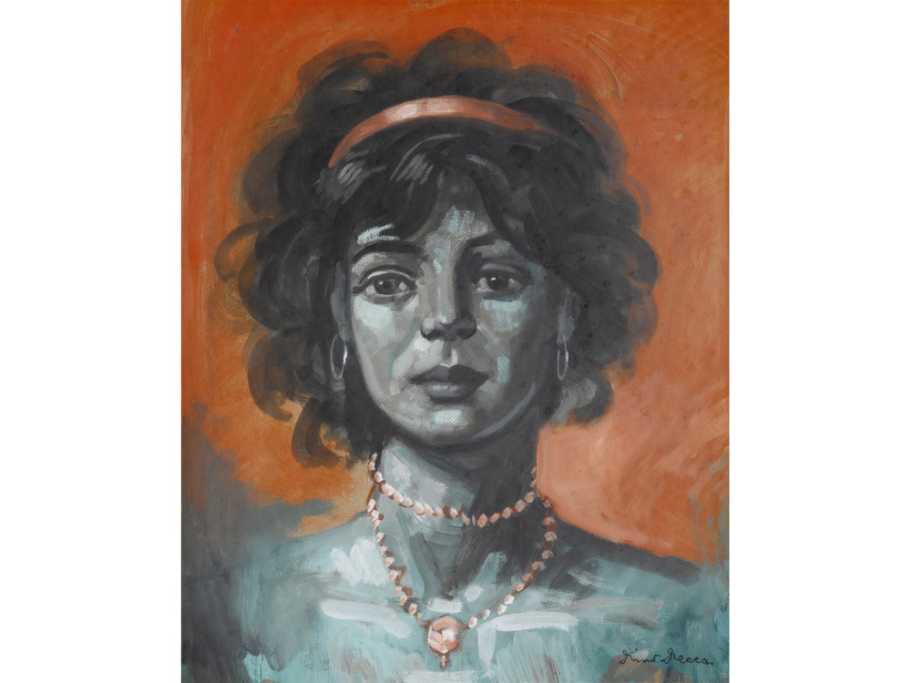 Dino Decca (Brescia 1935- 1999) Volto di modella color verde (Sabrina) Tempera Firmato Misure 55x45 cm