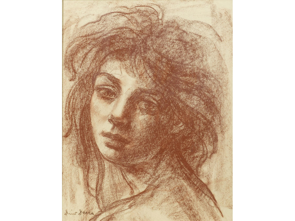Dino Decca (Brescia 1935- 1999) Volto di modella Sangiugna Firmato Misure 46x36 cm
