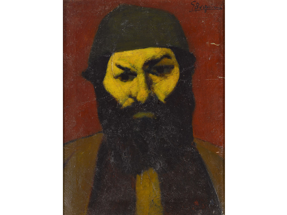 Giacomo Bergomi (Barco di Orzinuovi 1923-Brescia 2003) Ritratto Olio su tela Firmato e archiviato Misura 43,5x32 cm