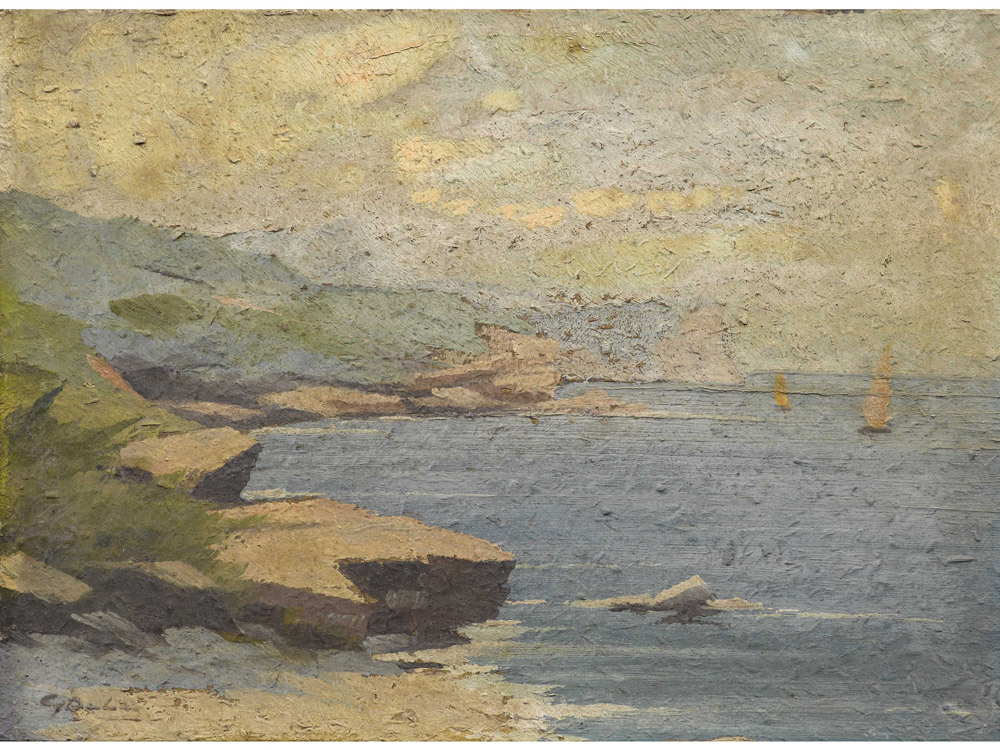 Luigi Delai (1891-1960) Veduta del Garda Olio su cartoncino Firmato Senza cornice Misure 20x30 cm