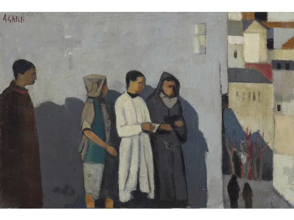 Augusto Ghelfi (Brescia 1911-2000) Ragazzi levantini Olio su tela Firmato...