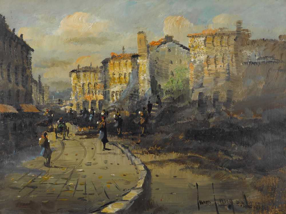 Lucio Cargnel (Treviso 1903-Milano 1998) Scorcio di paese Olio su cartoncino Firmato Misure 30x40 cm