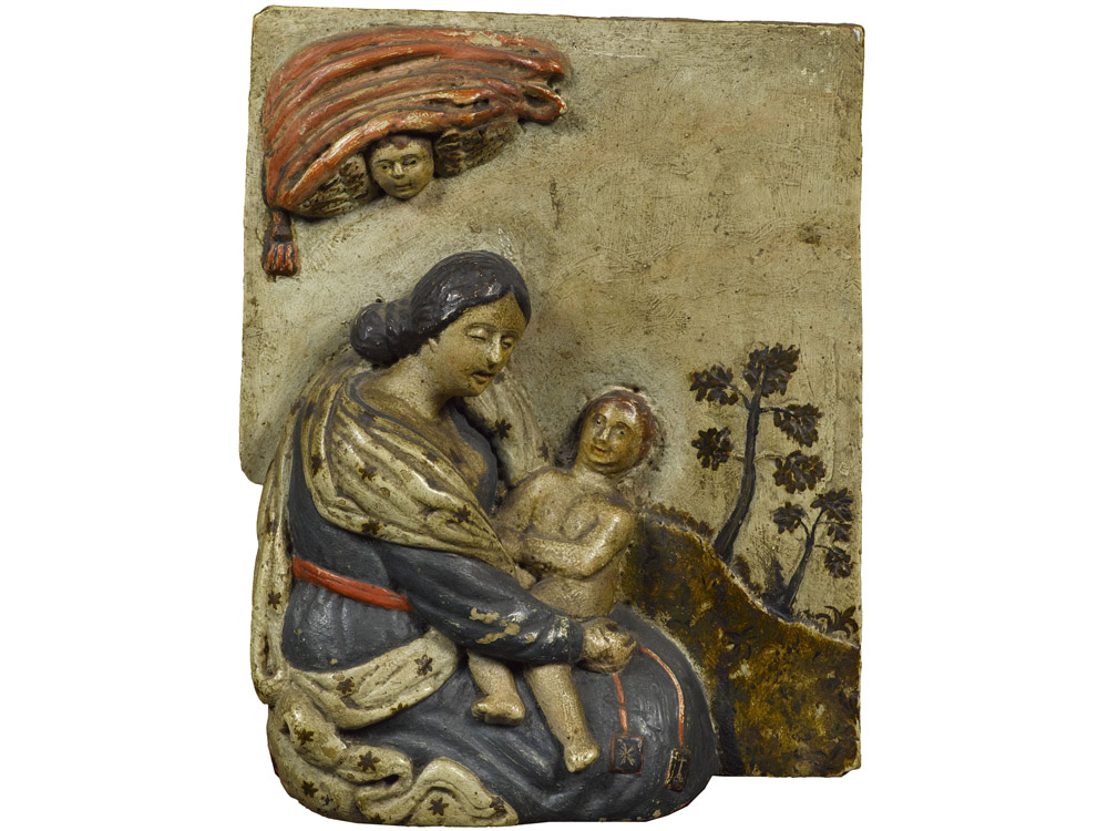Anonimo (XVII Secolo) Scuola nopoletana Madonna con Bambino Marmo Policromo Misure 20x15 cm