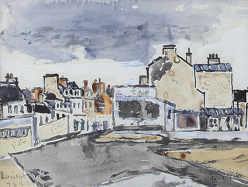 acquerello su carta cm 30x40, firma in basso a destra, località e anno in basso a sinistra, timbro della Galleria Il Tritone (Biella) al retro, opera registrata presso l'Archivio Orfeo Tamburi a cura della Galleria Gioacchini su foto.
