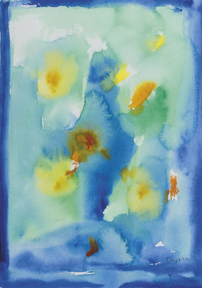 acquerello su carta cm 51x36, firma in basso a destra, firma e titolo al retro, dichiarazione d'autenticità dell'artista ed etichetta con firma della Galleria d'Arte Di Summa (Roma) su foto.