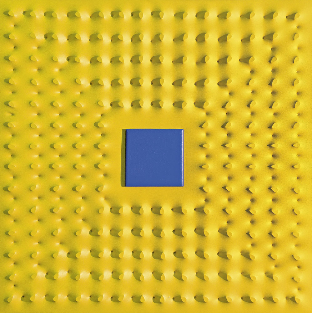 acrilico su tela estroflessa cm 87x87x2,5, firma e titolo al retro, dichiarazione d'autenticità dell'artista su foto, opera priva di cornice.
