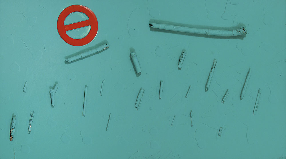 tecnica mista e collage su tela cm 40x70, firma in basso al centro, firma, titolo ed etichetta della Galleria Annunciata (MI) al retro.