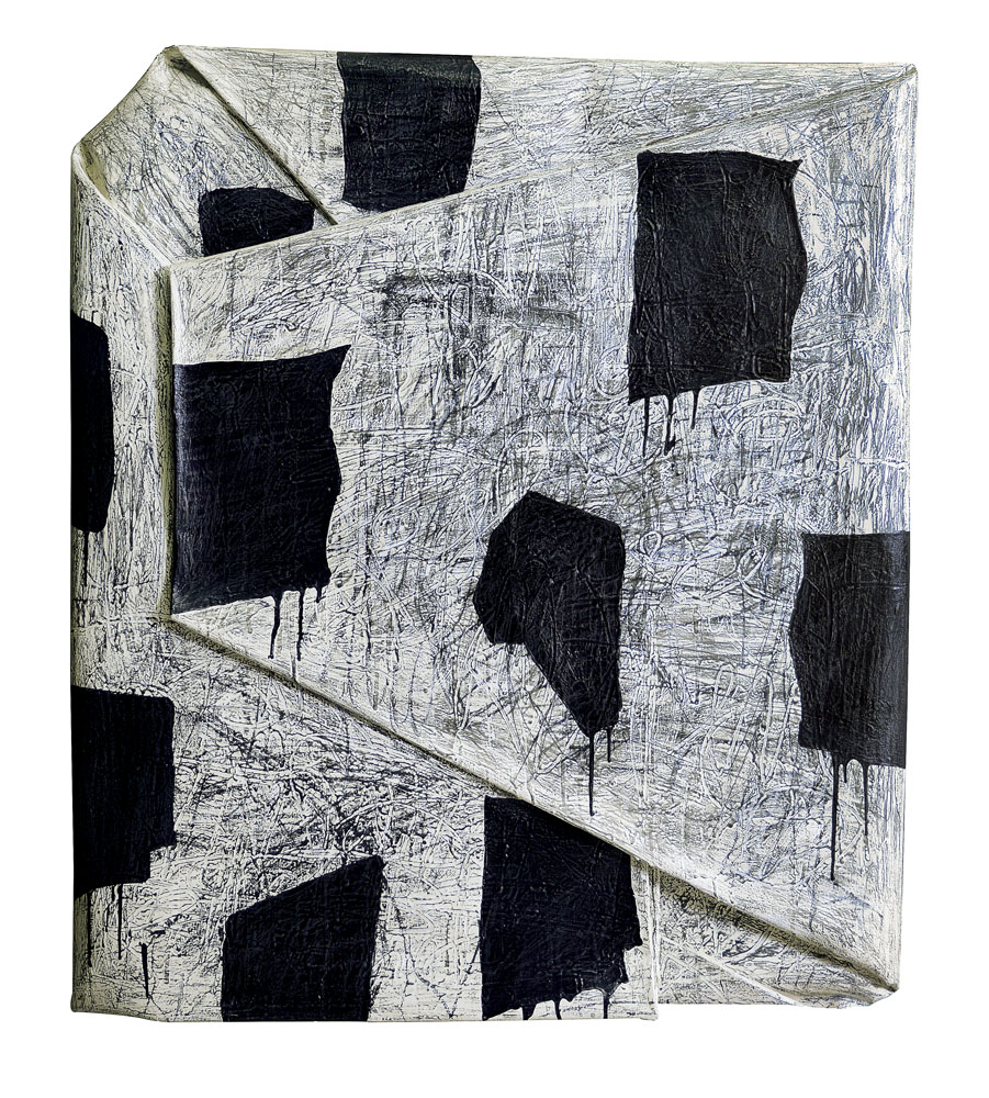 tecnica mista su tela piegata cm 92x80x6, firma titolo e anno al retro, dichiarazione d'autenticità dell'artista e timbro della Galleria Perlini su foto, opera priva di cornice.