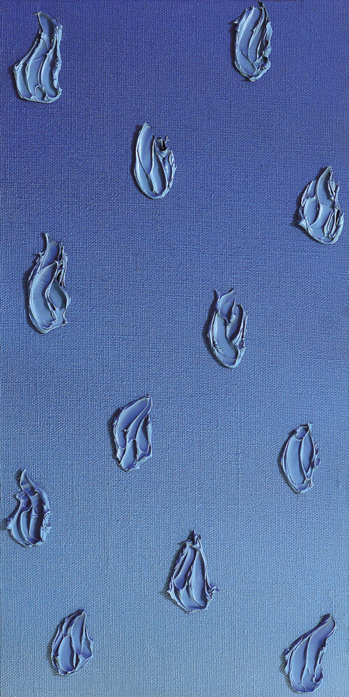 acrilici su tela cm 80x40, firma, anno ed etichetta con archivio al retro, dichiarazione d'autenticità e timbri dello Studio G.R. (Sacile-PN) su foto.
