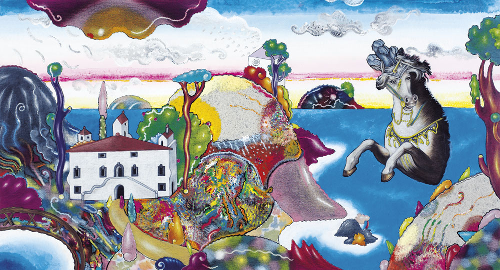 olio e tecnica mista su tela applicata su tavola cm 60x110, firma in basso a sinistra, dichiarazione d'autenticità dell'artista su foto.