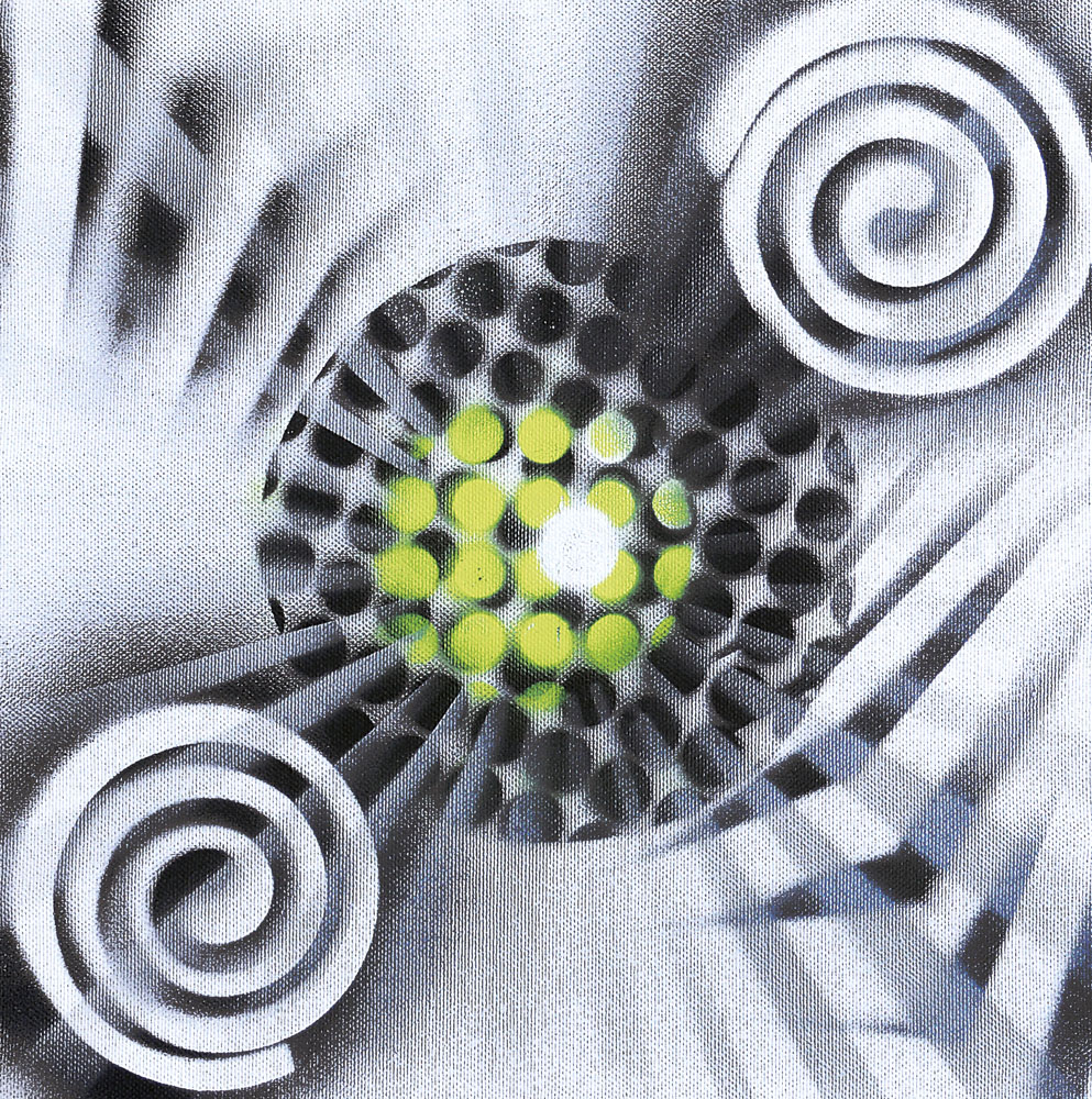 acrilici su tela cm 30x30, firma, titolo, anno e timbro dell'artista al retro, fotografia che ritrae l'artista e l'opera allegata.