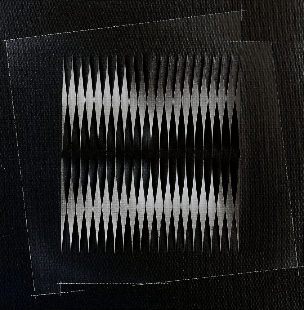 rilievi e acrilico su tela cm 40x40x4, firma, titolo, anno e timbro Alberto Biasi con numero di registro al retro, dichiarazione d'autenticità dell'artista su foto, opera priva di cornice.