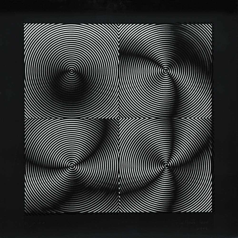 ALBERTO BIASI 1937 Senza titolo, 1972 Multiplo su tavola con vetro serigrafato, cm. 65 x 65 Firmato e datato in basso a destra Opera n. VI/XX Timbro Galleria Il Gelso sul retro Prov. Collezione Privata