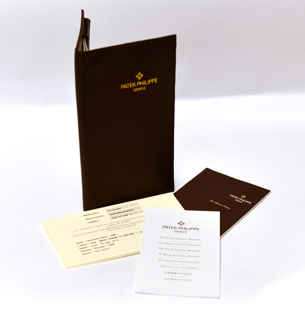 PATEK PHILLIPE Pochette in pelle, con libretto di istruzioni e garanzia originale del 2007, ref. n. 5711R001 PATEK PHILIPPE Leather bag with user manual and original warranty