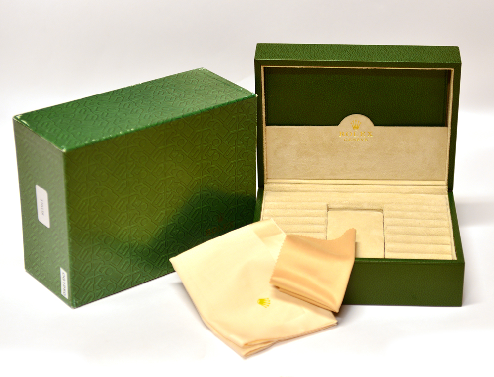 ROLEX Custodia portaorologio in pelle laccato verde con dettagli in ottone....