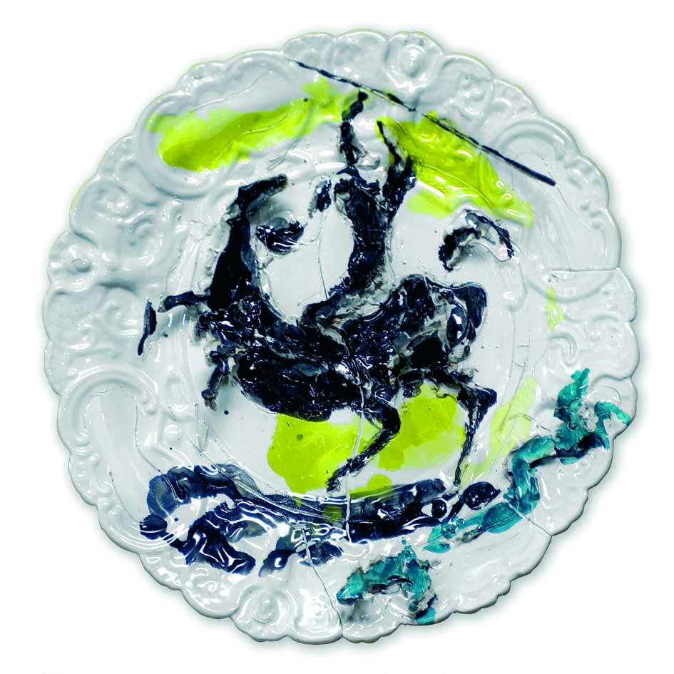 LUCIO FONTANA Guerriero a cavallo 1948-1950 Ceramica colorata 56 cm ø L’opera è archiviata presso la Fondazione Lucio Fontana con il numero 3402/2 Provenienza Collezione privata Esposizioni Gemonio, Museo Civico Floriano Bodini, 2006 Bibliografia Lucio Fontana. Attraversando la materia, cat. della mostra, a cura di D. Astrologo Abadal, Museo Civico Floriano Bodini, Gemonio, giugno-settembre 2006, Silvana Editoriale, Cinisello Balsamo 2006, n. 11, p. 44, illustrato a colori