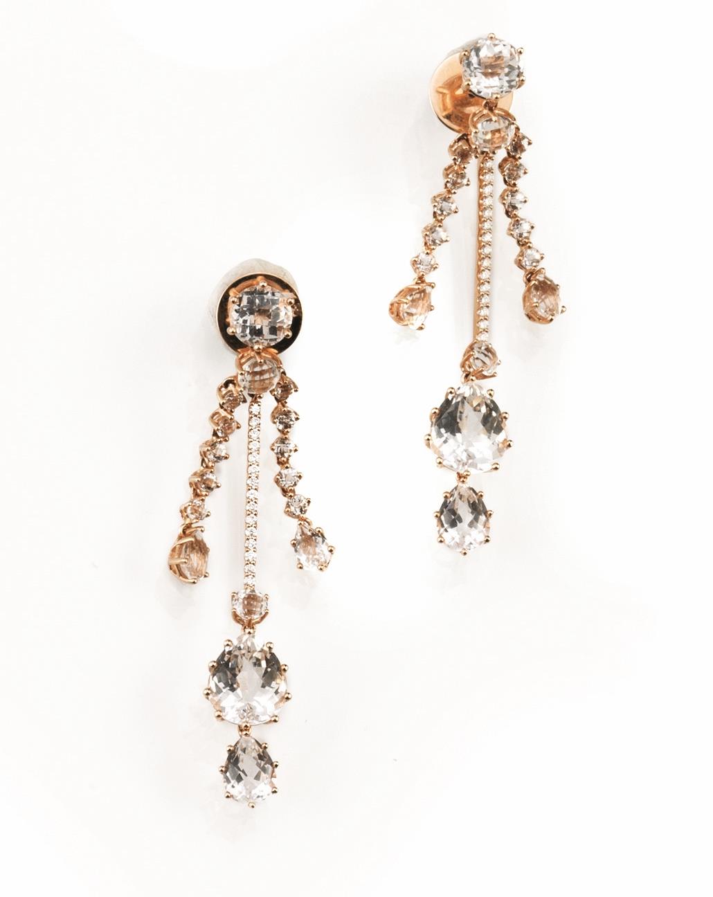 PAIO DI ORECCHINI PENDENTI IN ORO ROSA, TOPAZI INCOLORI E DIAMANTI