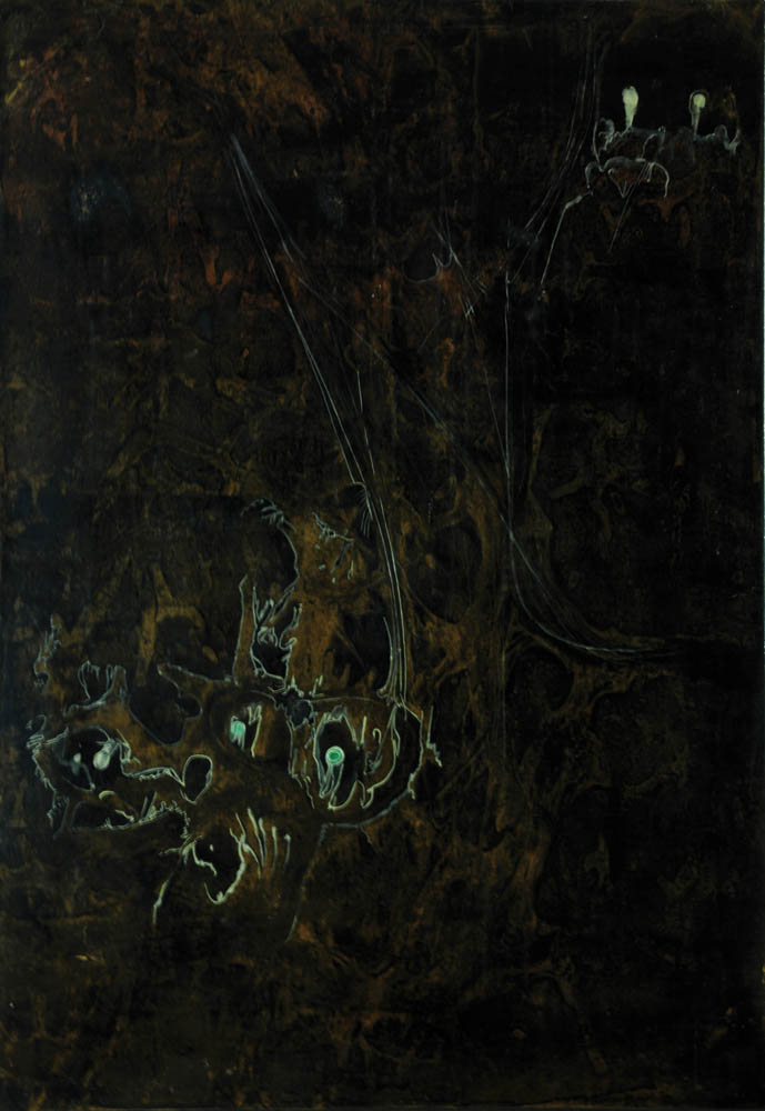 GIANNI DOVA 1925 - 1991 " Foresta ", anni 50 Tecnica mista su carta aplicata su tavola, cm. 99,5 x 69 Firmato sul retro Timbro Salone Annunciata sul retro Archivio Annunciata n. A/3779 Etichetta Galleria Arte Bologna sul retro. Prov. Collezione Privata