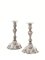 in argento, basi circolari sagomate e decorate da foglie, fusto a balaustro scanalato, alt. cm 25, g 935 (2)
