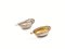 in forma di due gocce con profili decorati da foglie e baccellature, cm 13x7,5 e cm 12,5x7,5, complessivi g 150 (2)