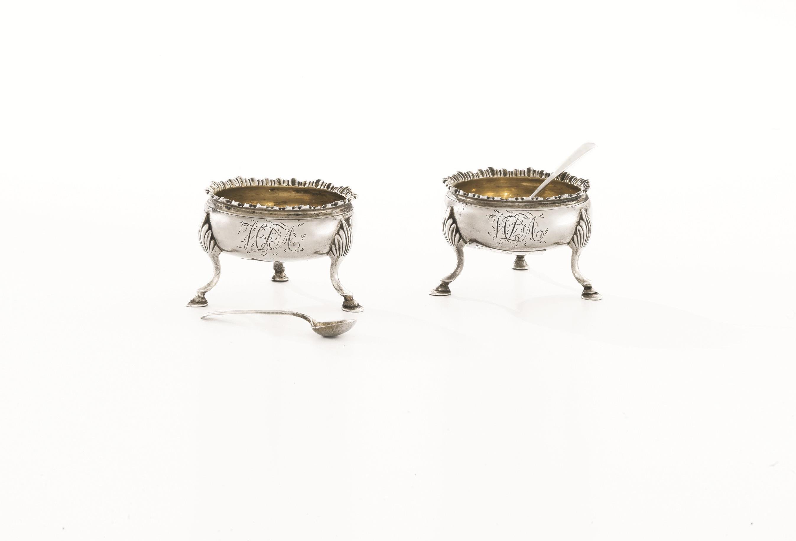 COPPIA DI SALIERE, LONDRA, 1818in argento, corpo circolare poggiante su tre...