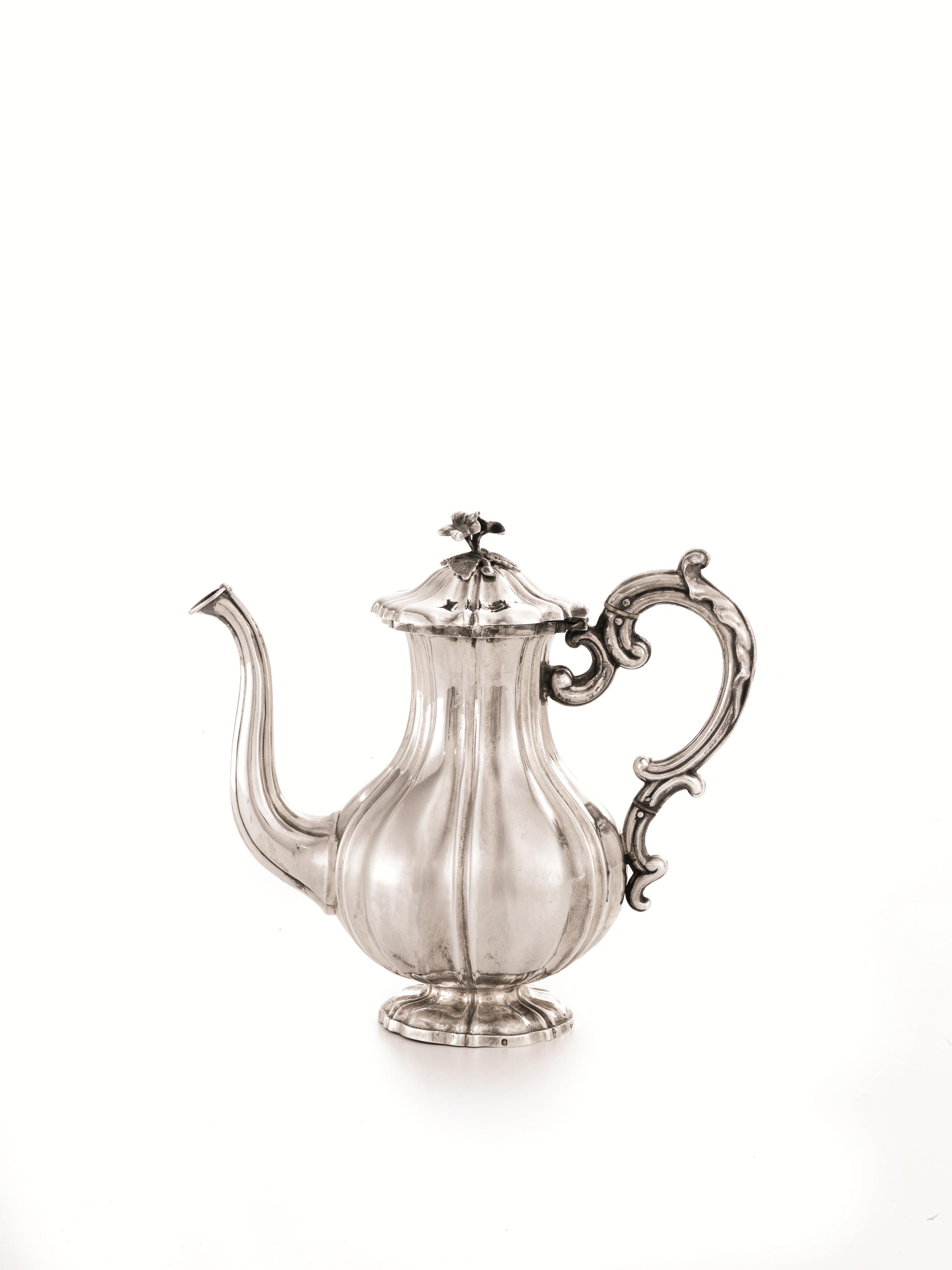 TEIERA, PARIGI, METÀ SECOLO XIXin argento sbalzato, presa a volute e...