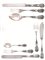 Composizione: 12 forchette; 12 coltelli; 12 cucchiai; 12 forchette da pesce; 12 coltelli da pesce; 12 forchette da frutta; 12 coltelli da frutta; 12 cucchiaini; 5 posate da portata