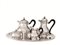 in argento composto di teiera, caffettiera, lattiera, zuccheriera e vassoio, cm 58x42, complessivi g 4160 (5)