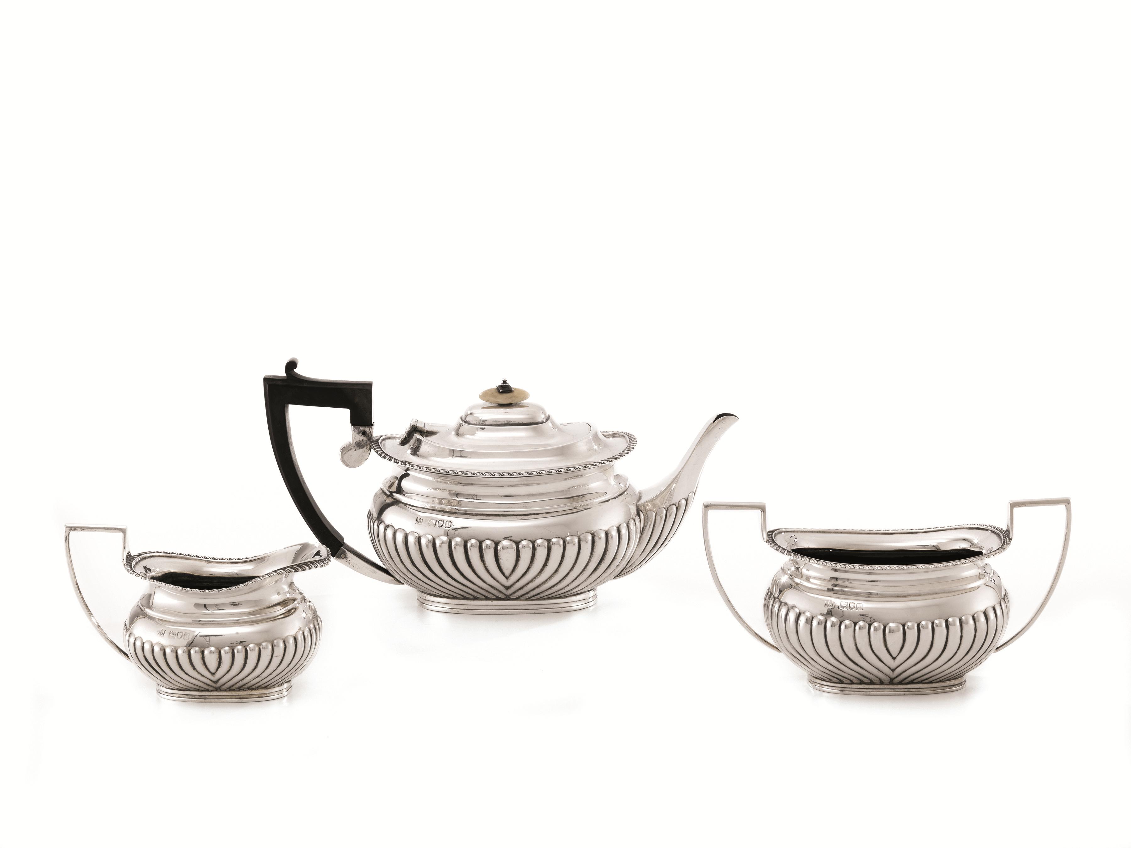 SERVITO DA TÈ, LONDRA, 1896in argento sbalzato, composto di teiera,...