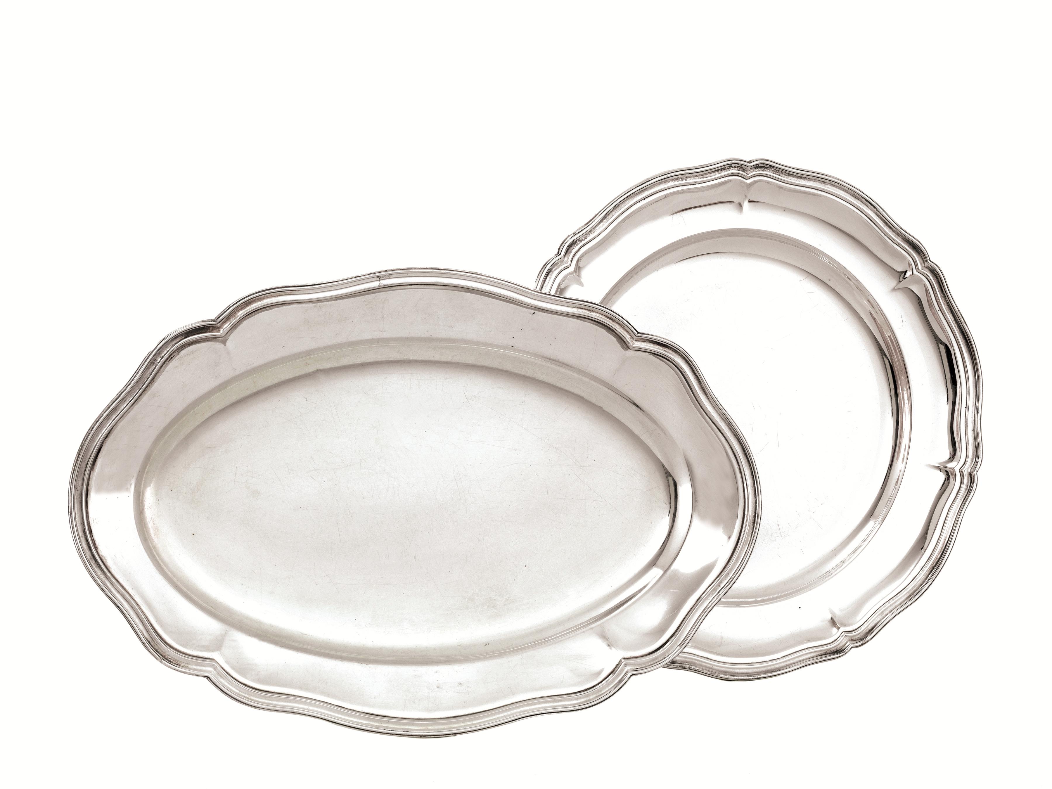 in argento con tese lobate, cm 50x33 e diam. cm 40 e cm34, complessivi g 5130 (4)