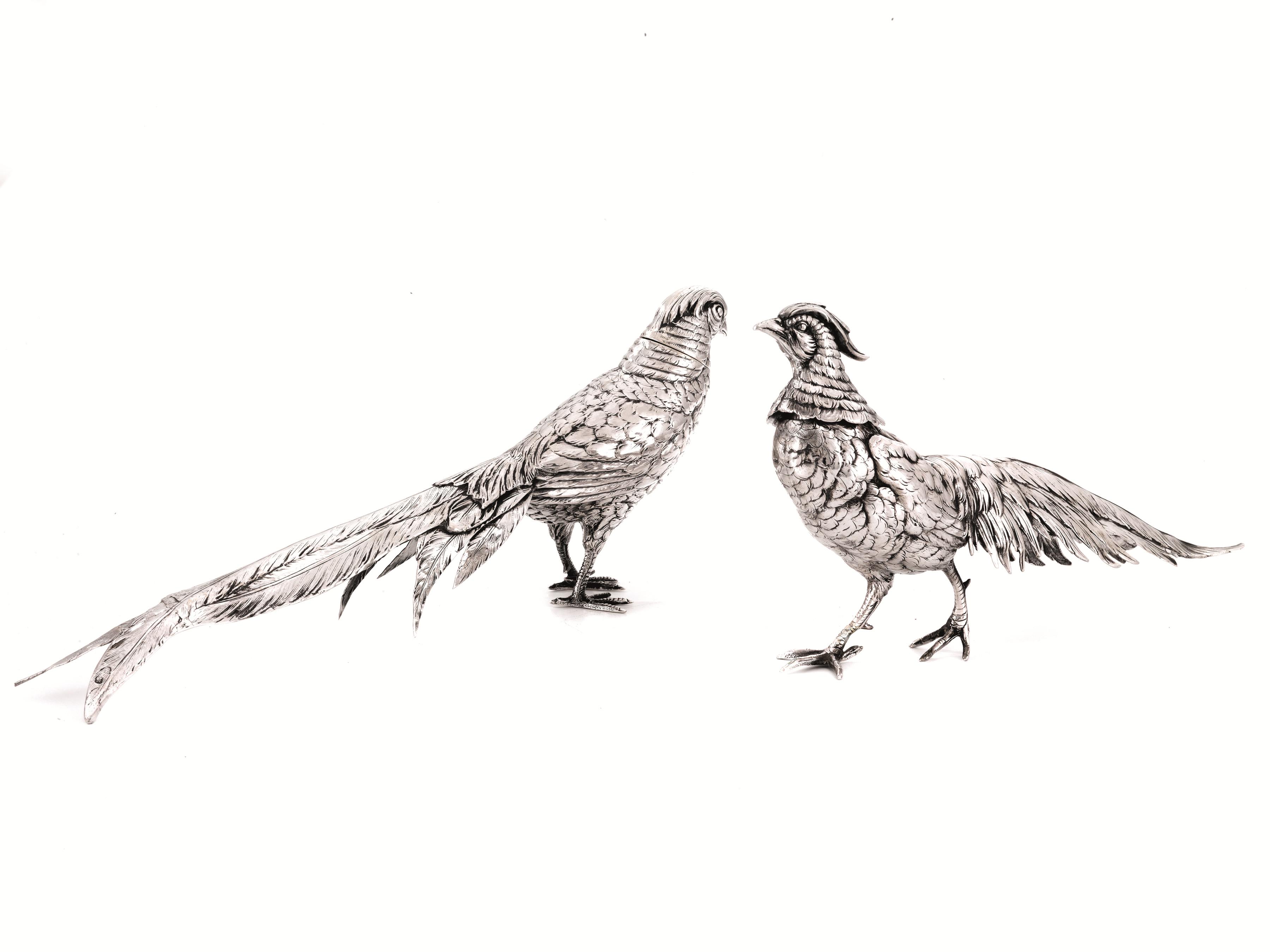 Lot 201 | DUE FAGIANI, SECOLO XX  in argento, lungh. cm 38 e cm 31, complessivi g...