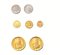 monete: Repubblica Italiana, 500 lire Unità d’Italia, q. FDC; Repubblica Italiana, 500 lire Dante, prova; Venezia, ducato d’oro di Andrea Dandolo, riproduzione; Siena, ducato del 1548, riproduzione in oro;