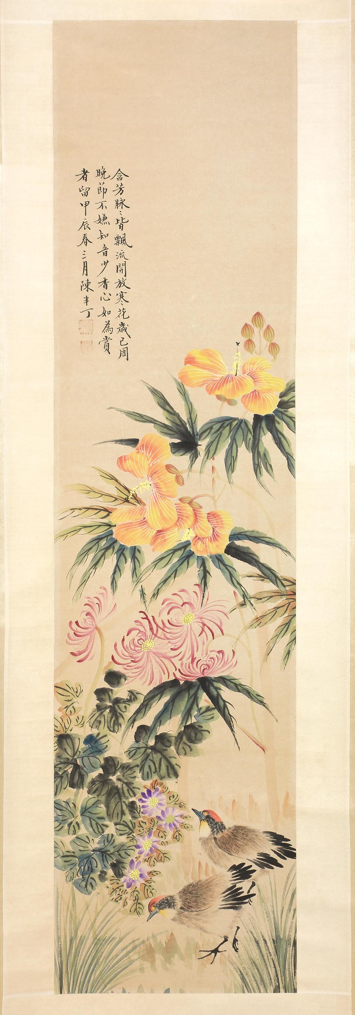 COPY FROM CHEN BANDING (1876-1970) FOUR FLOWER AND BIRDS SCROLLS PAINTINGS
