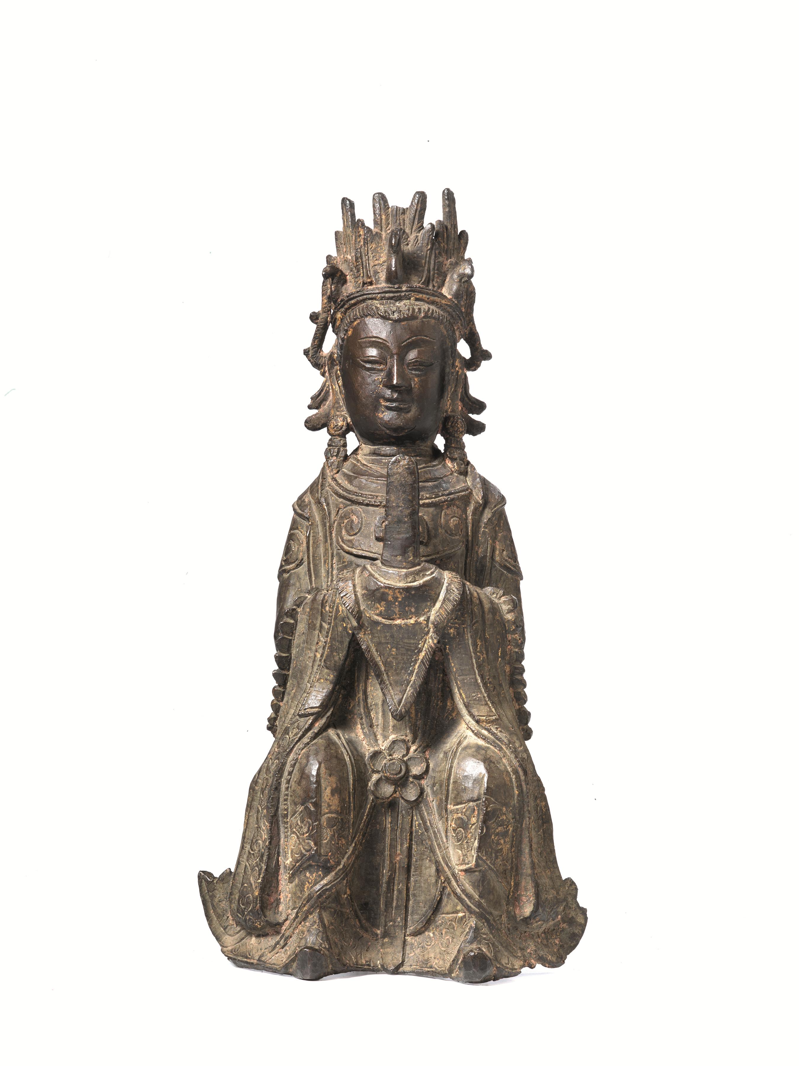 A BRONZE FIGURE FIGURE OF A DAOIST DEITY VHINA MING DYNASTY 17TH CENTURY