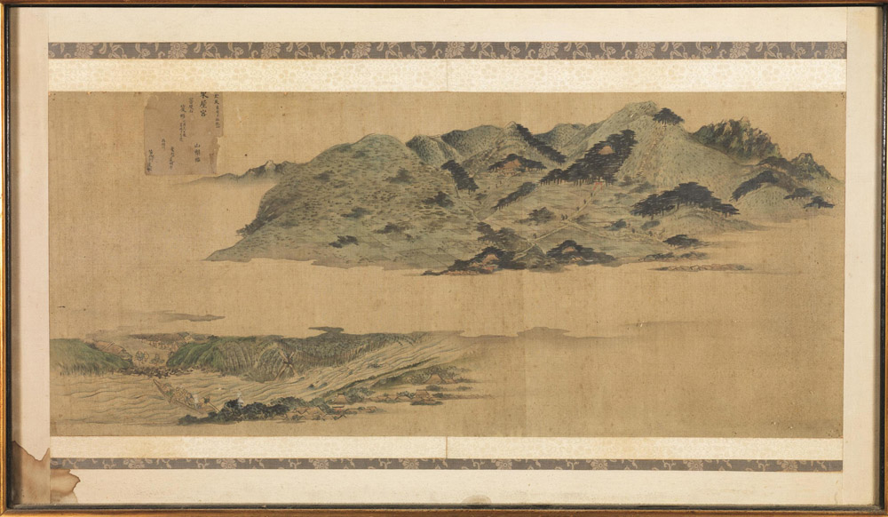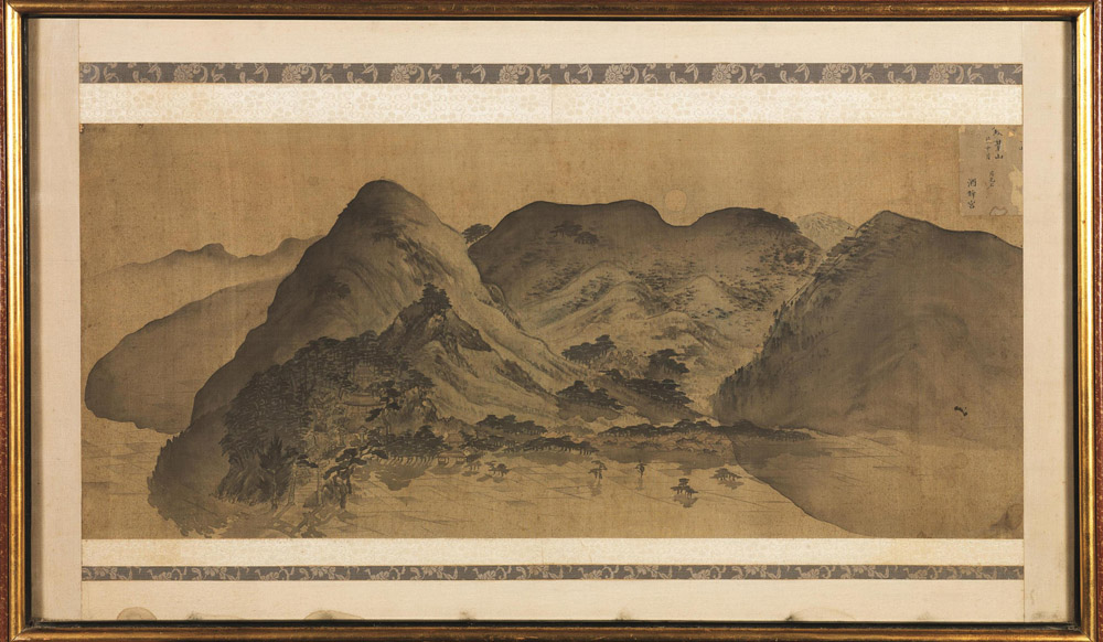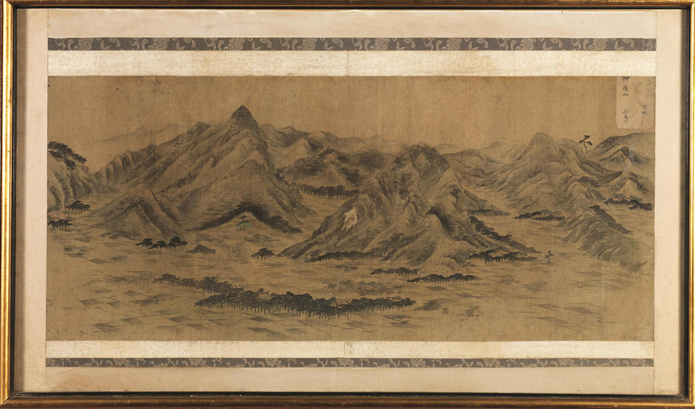 THREE PAINTING ON SILK WITH A MOUNTAIN JAPAN 19TH CENTURY