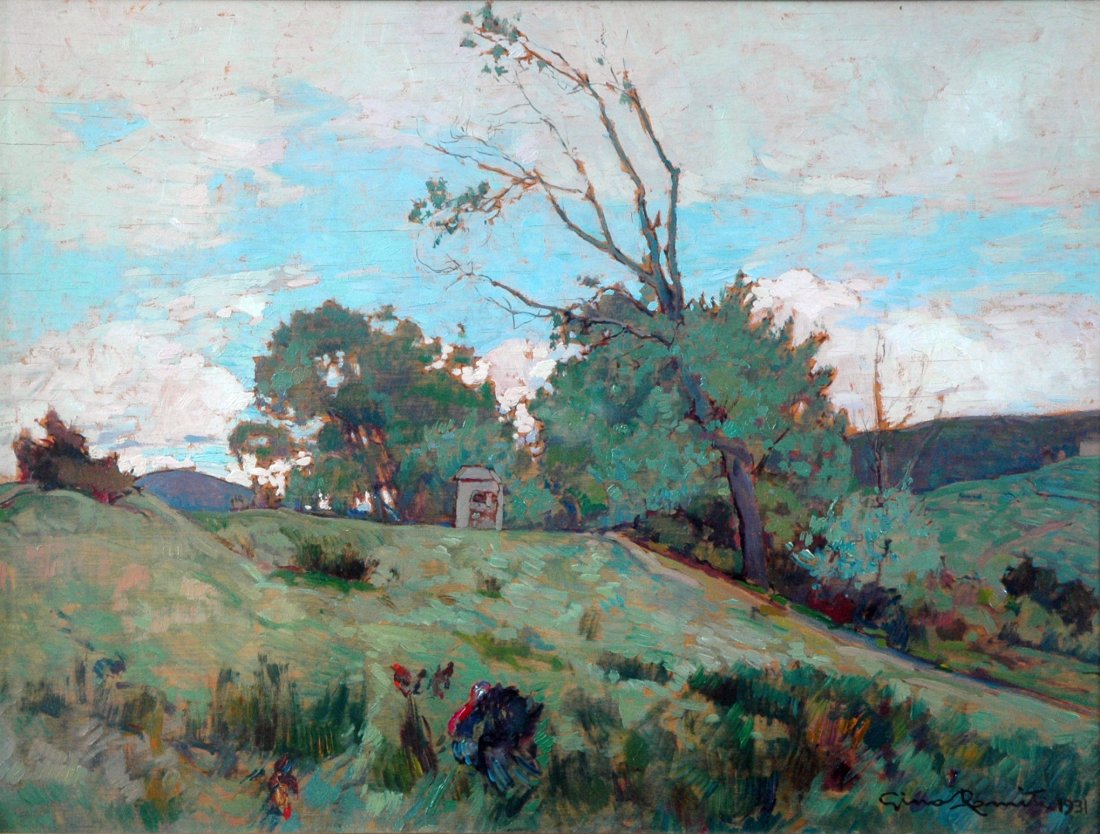 GINO ROMITI(Livorno, 1881-1967)Campagna livornese1931Olio su tavola, cm 30,4...