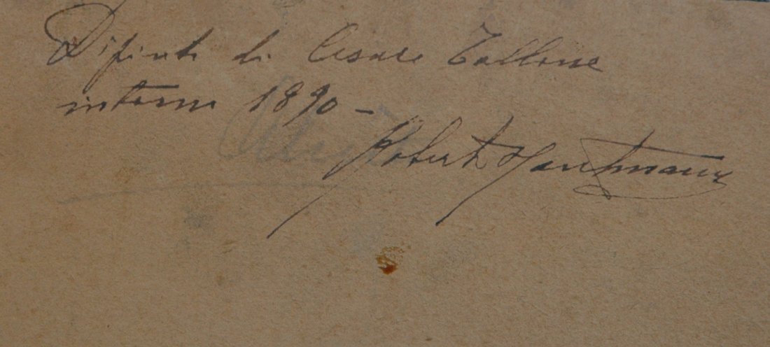 Firmato C.T. nell'angolo a destra. Autentica sul retro Dipinto di Cesare Tallone intorno 1890 a firma di Roberto Montanari (?).