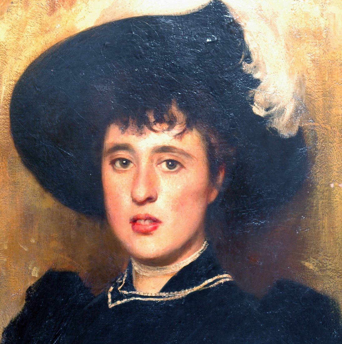 La Signora del ritratto, in base ai documenti di famiglia degli eredi, è stata identificata nella dama lombarda Erminia Saporiti, trasferitasi a Verona in seguito al suo matrimonio.