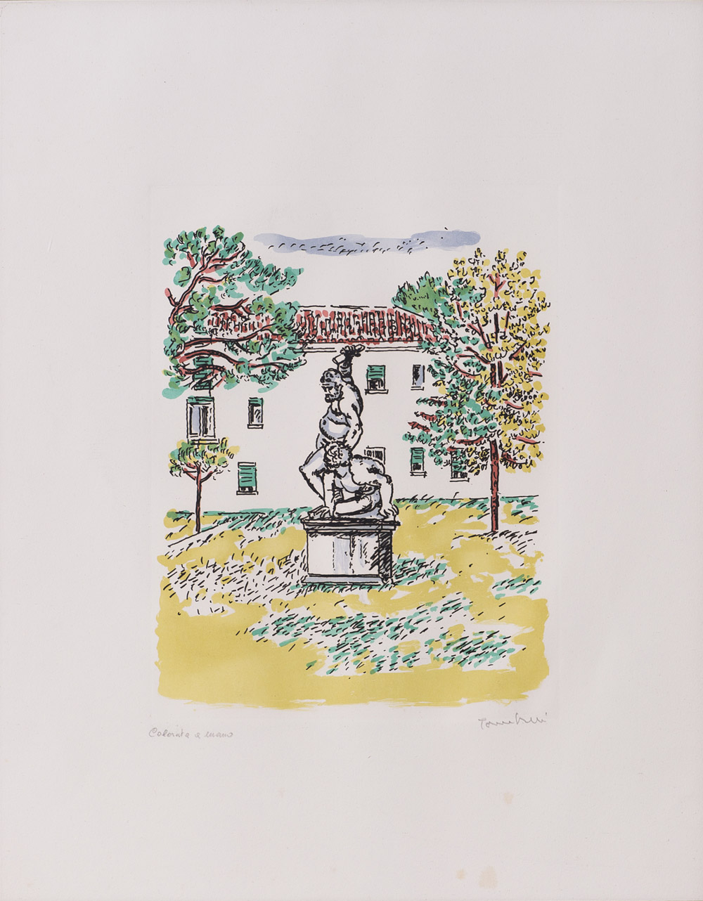 Iscrizione a matita "colorata a mano" in basso a sinistra