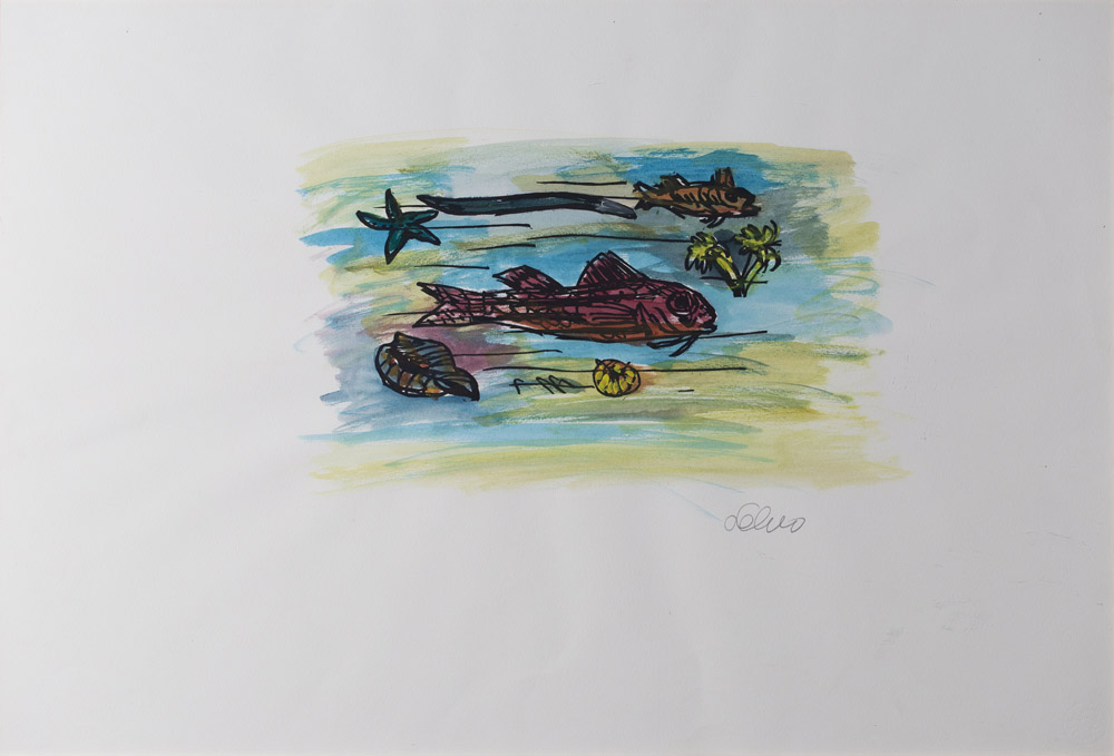 SALVO (1947-2015) Pesciolini, 2002 Acquerello su base xilografica - pezzo...