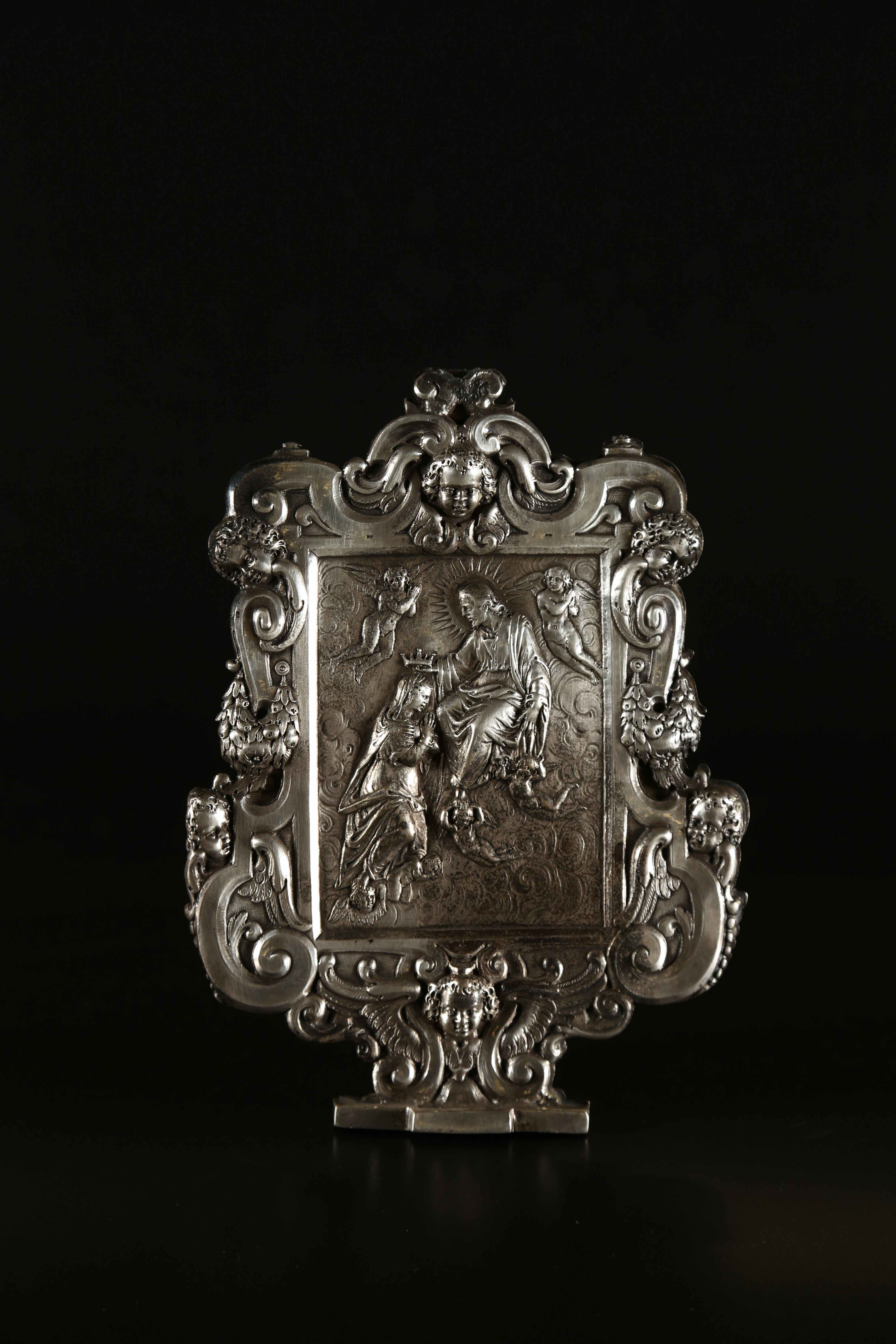 MANIFATTURA LOMBARDA DEL XVII SECOLO Pace in argento finemente sbalzato e cesellato. Argento. Cm 16,00 x 22,50.
