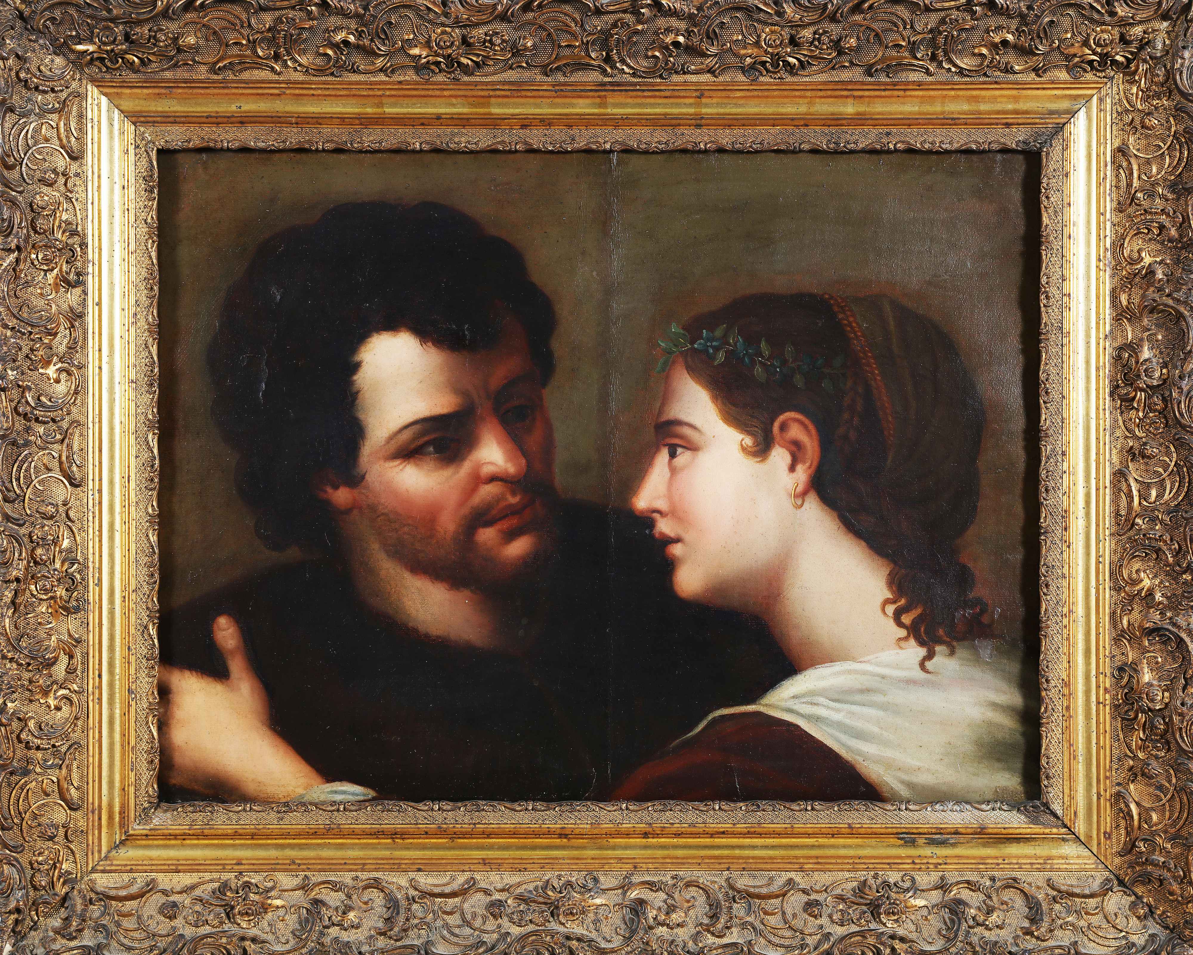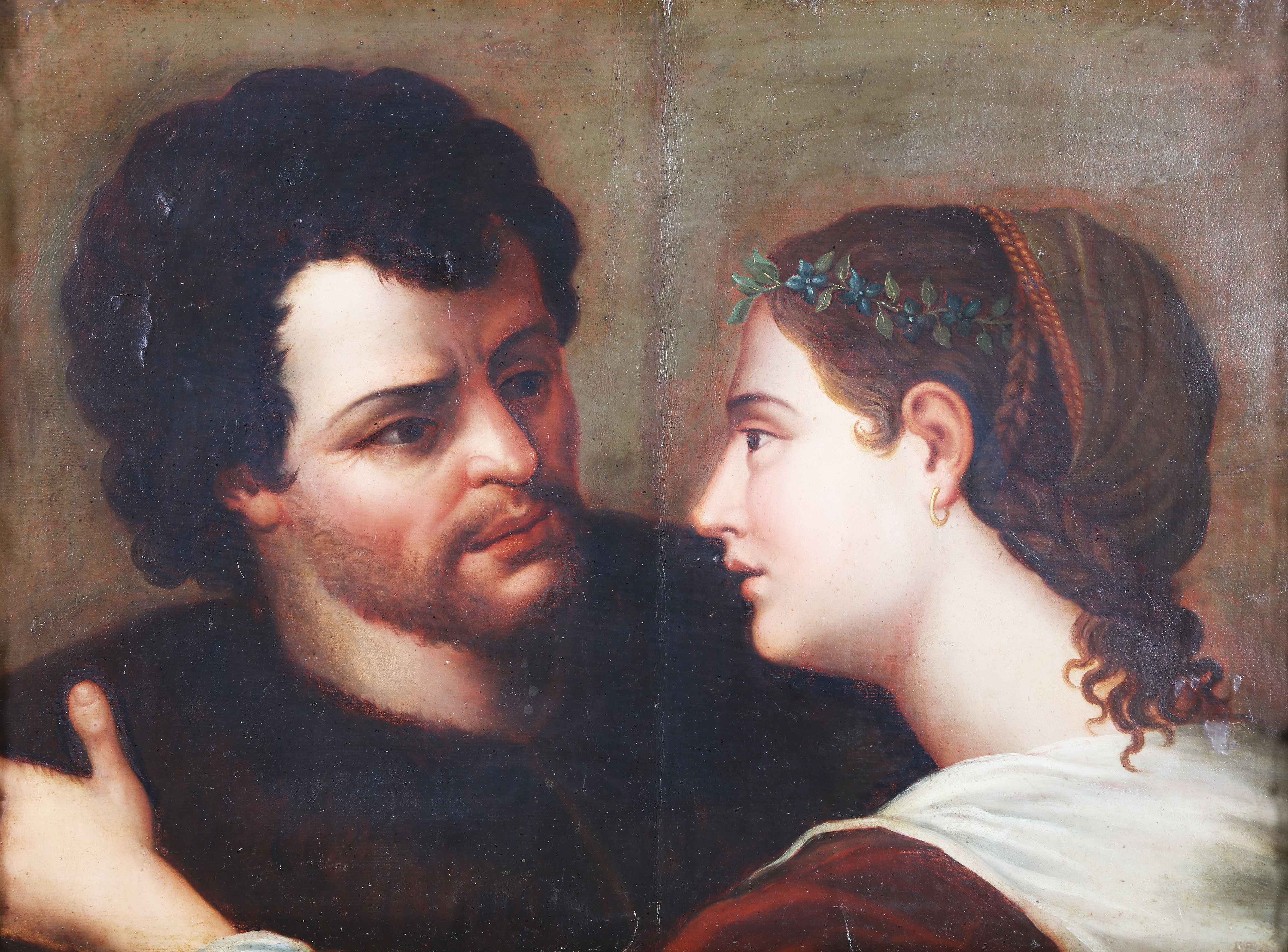 ARTISTA NEOCLASSICO Due volti. Olio su tela. Cm 65,00 x 45,00. Al retro iscrizione antica: Appiani quadro del 1808.