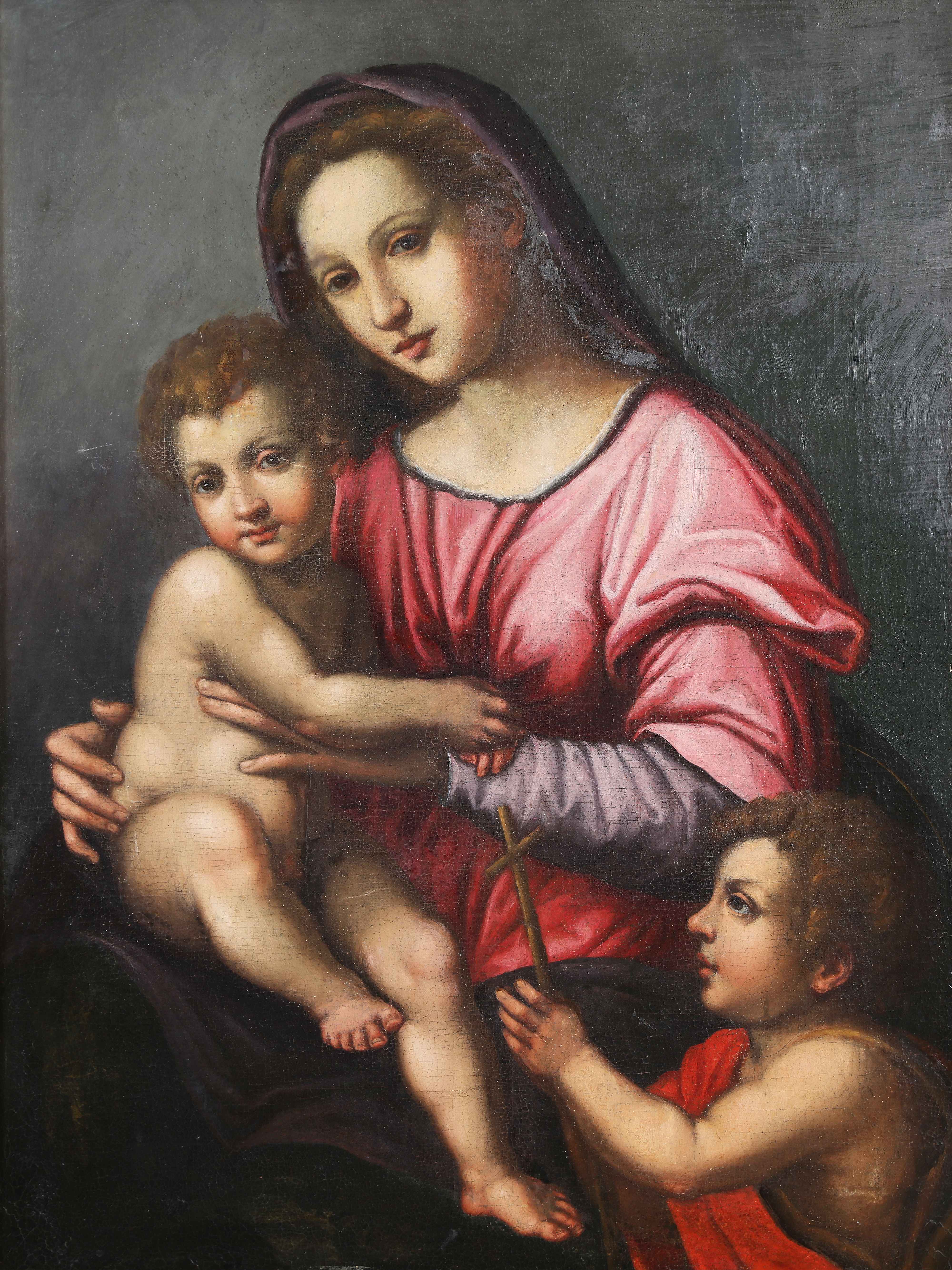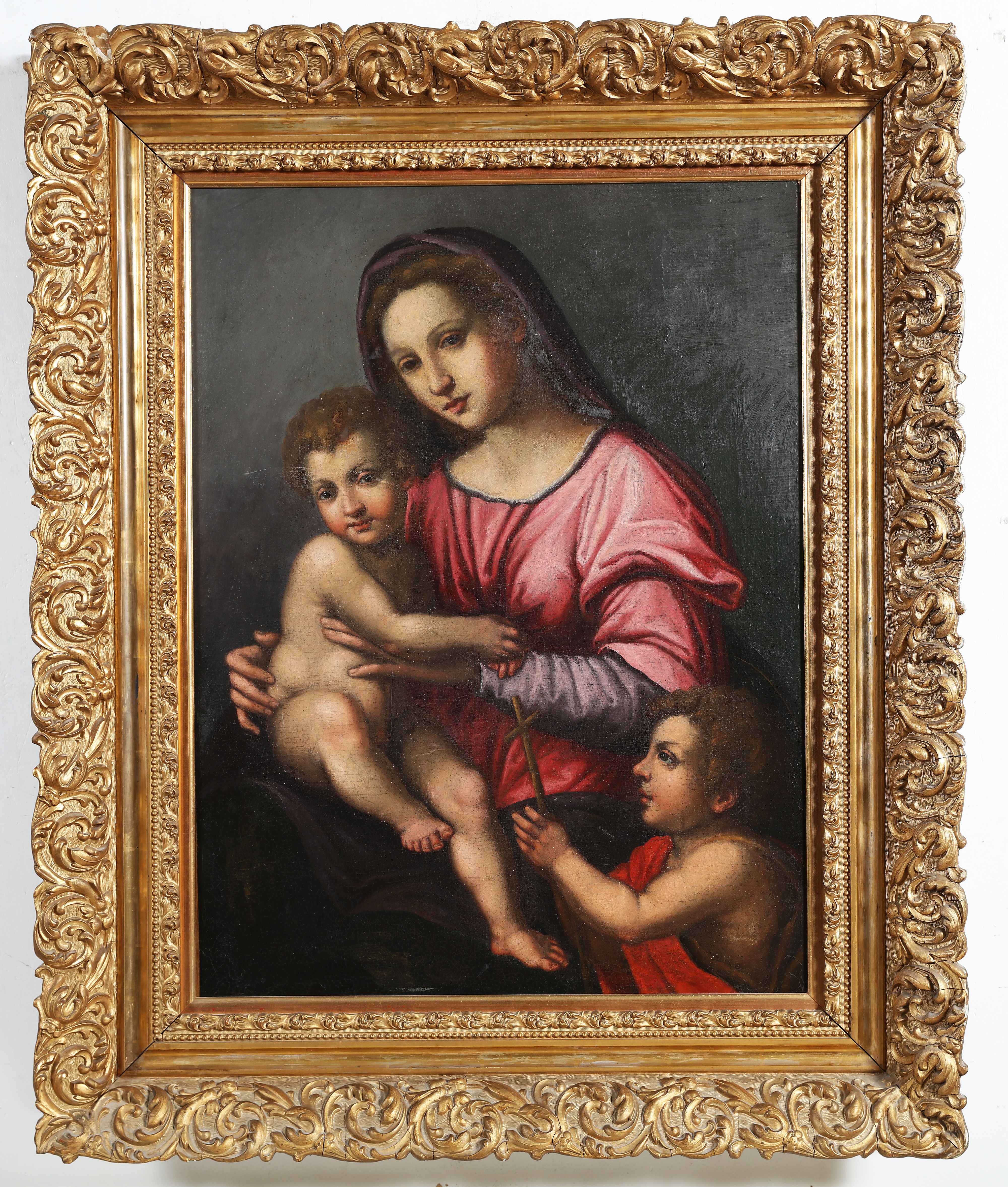 ARTISTA ITALIANO DEL XVII SECOLO Madonna con Bambino. Olio su tela. Cm 60,00...