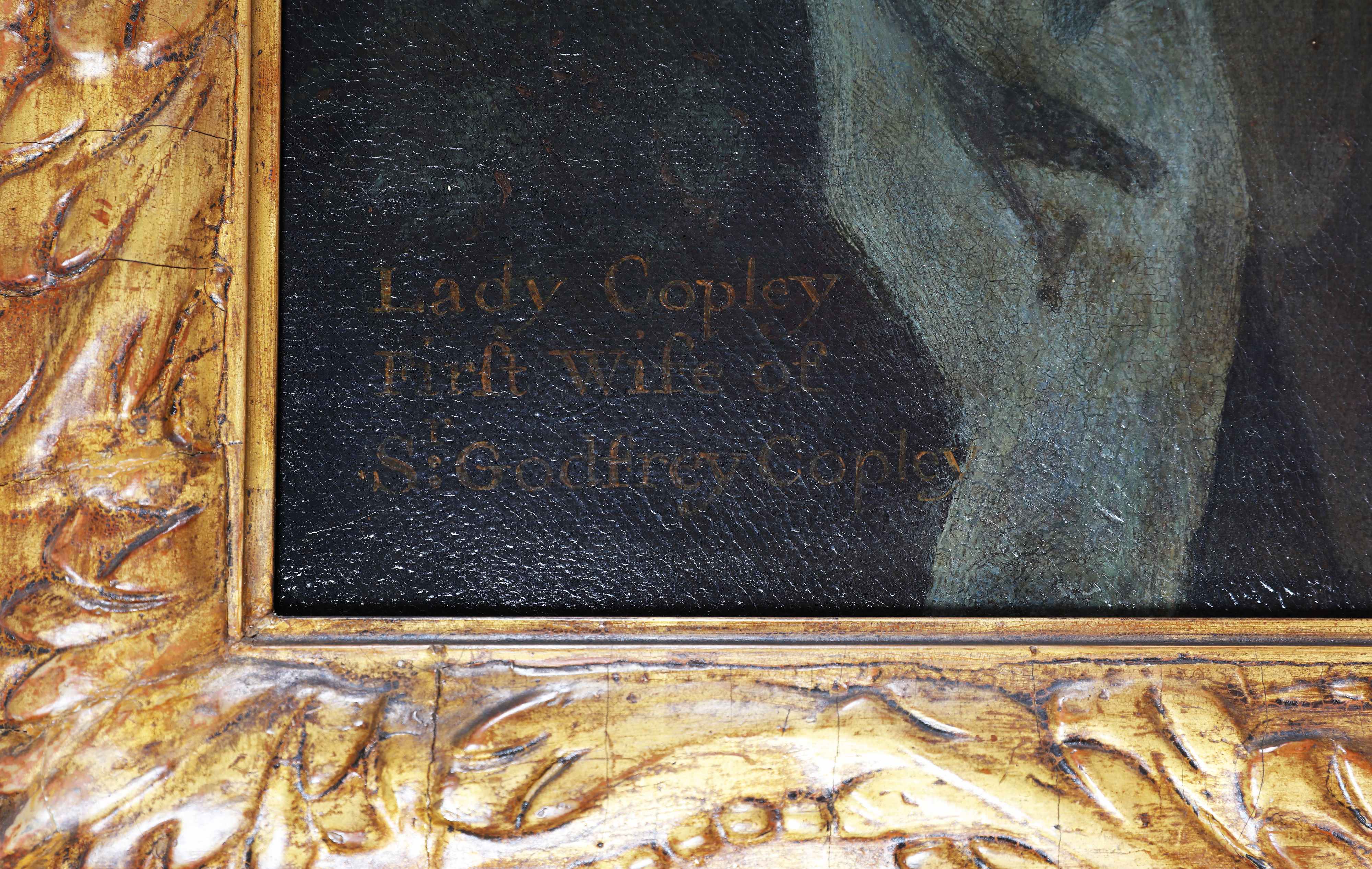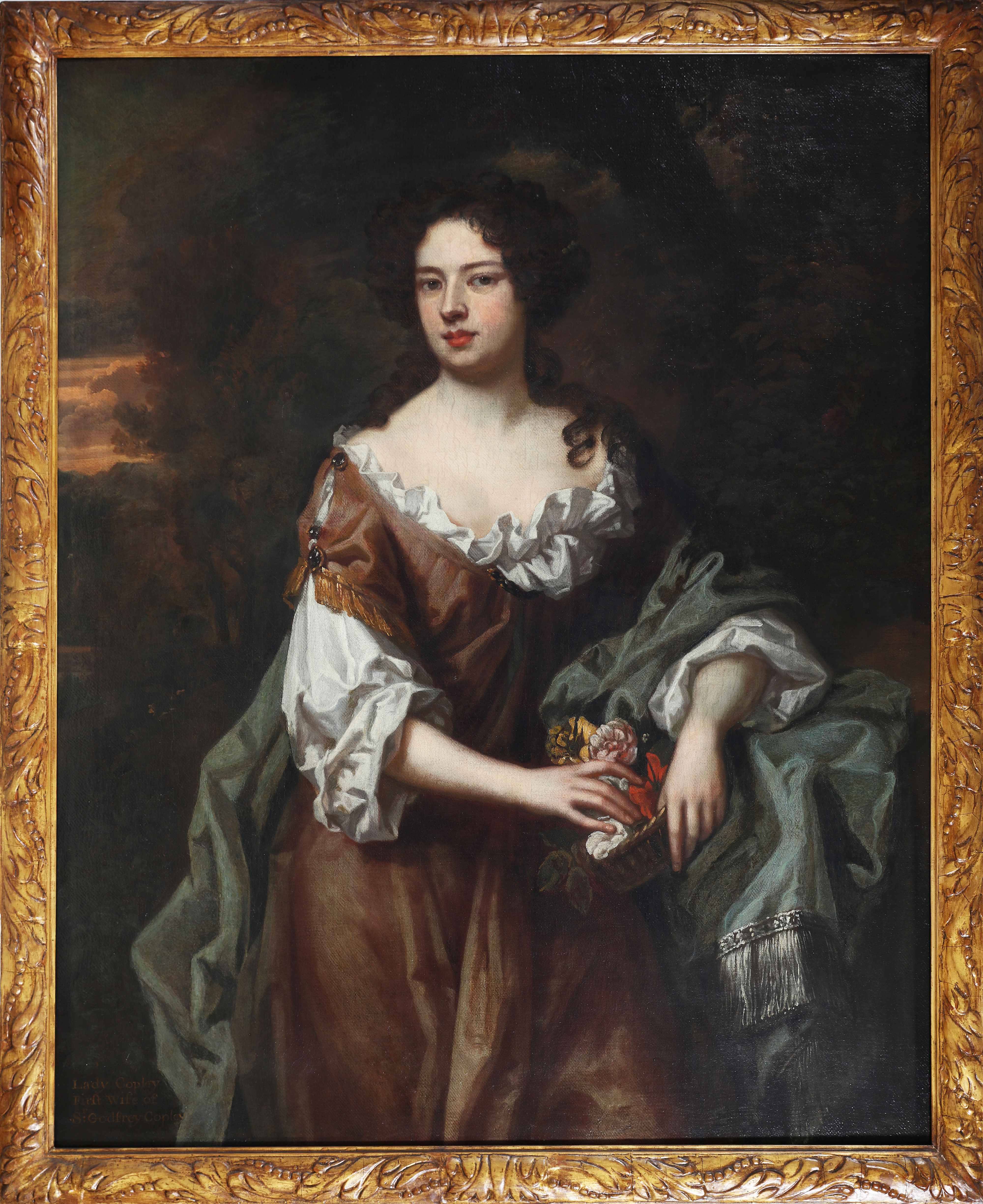 LELY PETER (1618 - 1680) Attribuito a, Ritratto di Lady Copley. Olio su tela. Cm 126,00 x 102,00. Opera provvista di attestato di libera circolazione. Iscrizione coerva in basso a sinistra: Lady Copley first wife of Sir Goddfrey Copley. In cornice dorata antica. Cornice presente