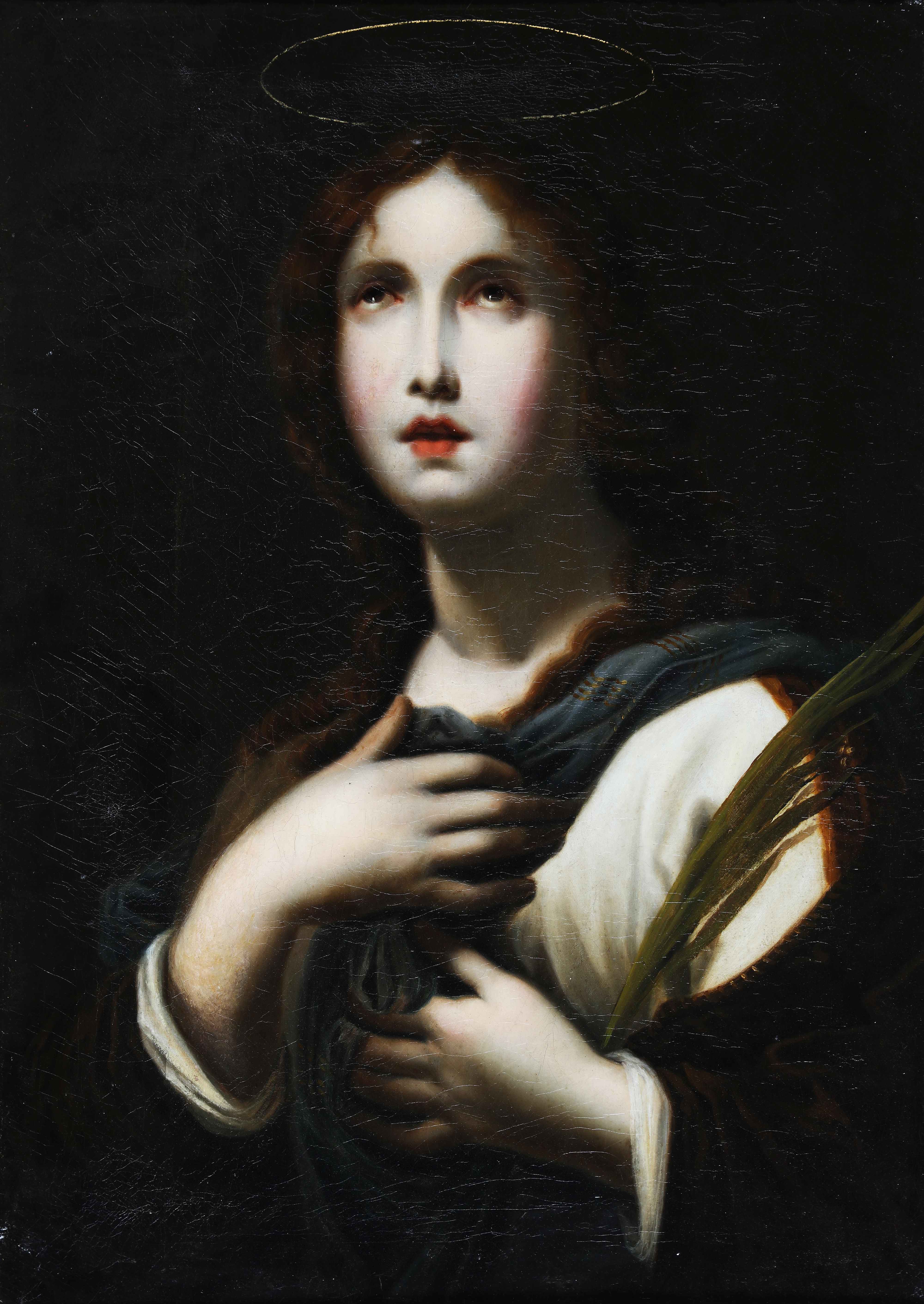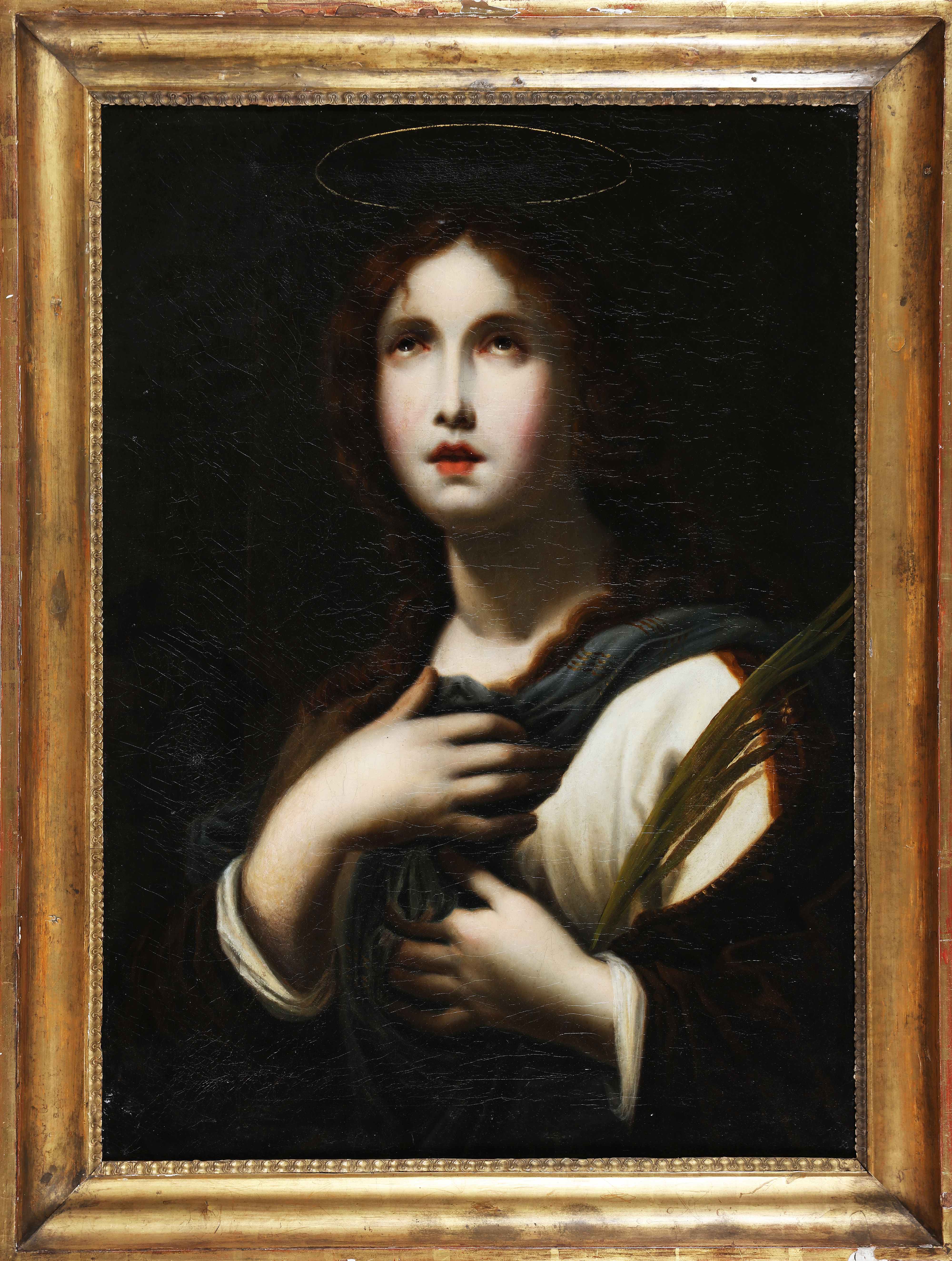 DOLCI CARLO (1616 - 1686) Seguace di. Sant'Agnese. Olio su tela. Cm 49,00 x 68,50. . Cornice presente