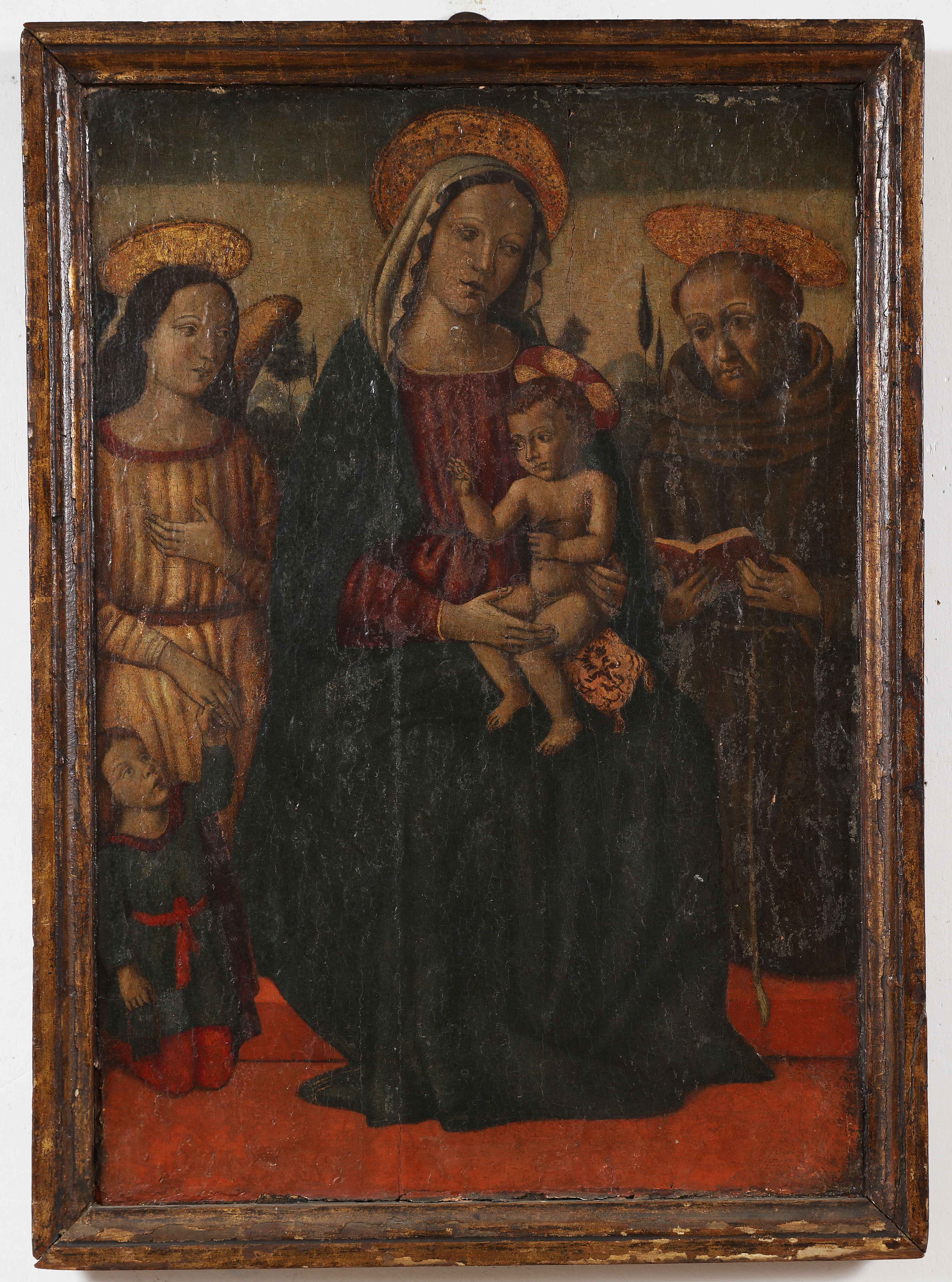 ARTISTA TOSCANO DEL XVI SECOLO Madonna con Bambino e Santi. Tempera su tavola. Cm 47,00 x 65,00. Opera provvista di certificato di esportazione