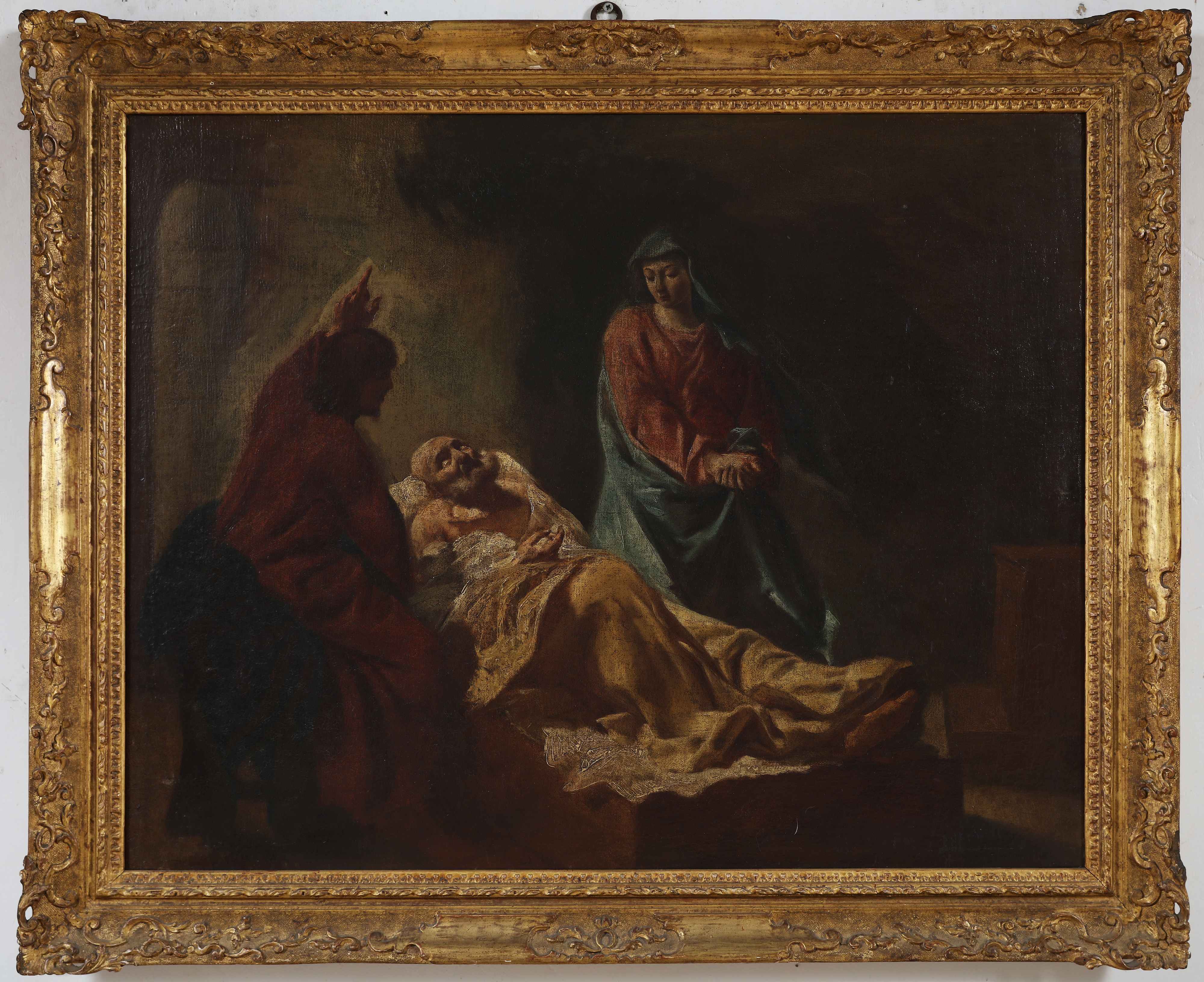 PIAZZETTA GIOVANNI BATTISTA (1682 - 1754) Seguace di, Il transito di San Giuseppe. Olio su tela . Cm 67,00 x 80,00. Opera provvista di attestato di libera circolazione. In cornice dorata antica.